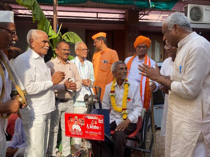 स्व. श्रीनिवास शिंदे मेमोरियल रवींद्र शिंदे चॅरिटेबल ट्रस्टचे उपक्रम “हिंदुहृदयसम्राट वंदनीय बाळासाहेब ठाकरे दिव्यांग योजना” अंतर्गत भद्रावती तालुक्यातील चिरादेवी येथील बाबुराव खंडारकर यांना दिव्यांग तीन चाकी सायकल भेट देण्यात आली.