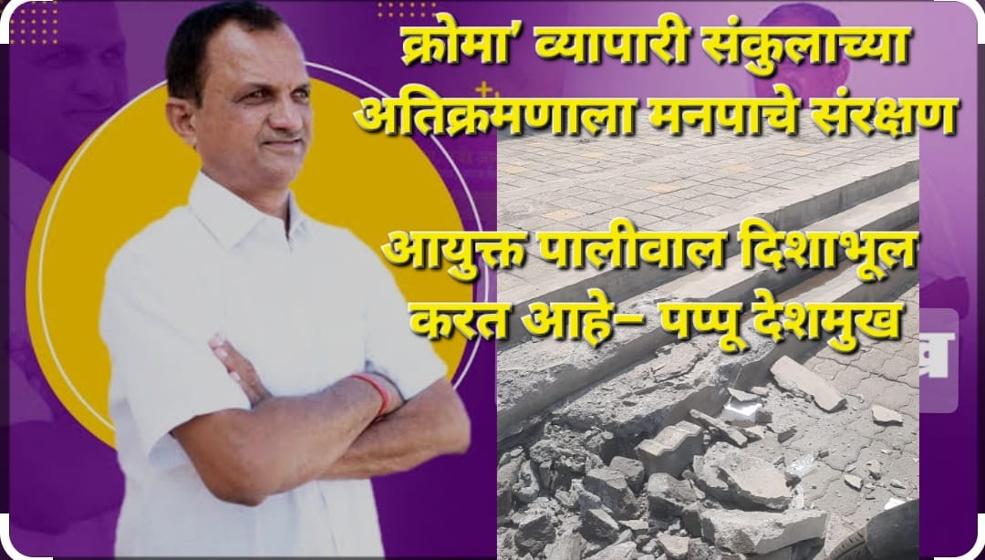 याबाबत मनपा आयुक्त विपिन पालीवाल यांना फोन वरून विचारणा केली. ‘व्यापारी संकुला समोरील गाड्यांना येण्या-जाण्याची गैरसोय होऊ नये म्हणून रॅम काढण्याची कारवाई करू नये’ अशा सूचना दिल्याची माहिती आयुक्त पालीवाल यांनी मला फोन वरून दिली. मात्र ‘क्रोमा’ व्यापारी संकुला नंतर भगवान ऑटोमोबाईल तसेच इतर दुकाना समोरील रॅम व पायऱ्या काढताना अतिक्रमण विरोधी पथकाने आयुक्तांच्या सूचनांचे पालन का केले नाही ? याचे उत्तर आयुक्तांकडे नाही. यावरून आयुक्त पालीवाल दिशाभूल करीत असल्याचे सिद्ध झाले. सत्ताधाऱ्यांच्या मर्जीतील व्यापारी संकुलाच्या अतिक्रमणाला मनपा आयुक्त अभय देत असल्याचा आरोप होत असुन ही गंभीर बाब आहे. अतिक्रमण काढण्याची कारवाई करताना नियमानुसार सर्वांना समान न्याय देणे अपेक्षित आहे.
