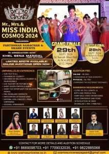 अशीच मिस इंडिया स्तरावरील स्पर्धा प्रथमच नागपुरात होणार असून यामध्ये मिस, मिसेस आणि मिस्टर या तीन प्रकारात स्पर्धा होणार आहे. या स्पर्धेत देशाच्या कानाकोपऱ्यातून नवीन आणि अनुभवी मॉडेल्स सहभागी होणार आहेत. त्यांची निवड करण्यासाठी, कॉसमॉसने देशभरात ऑनलाइन आणि ऑफलाइन ऑडिशन्स आयोजित केल्या आहेत. देशातील सुमारे 20 ते 25 प्रमुख शहरांमध्ये ऑफलाइन ऑडिशन्स होणार असून उर्वरित ठिकाणी ऑनलाइन ऑडिशनद्वारे सहभाग घेता येईल. या स्पर्धेचा अंतिम सामना 29 सप्टेंबर रोजी सुरेश भट सभागृह, रेशम बाग, नागपूर येथे दुपारी 12.30 वाजता होणार आहे. अंतिम स्पर्धेपूर्वी, महाराणा रिसॉर्ट, ताडोबा येथे निवडलेल्या सर्व मॉडेल्ससाठी तीन दिवसीय निवासी ग्रूमिंग आणि प्रशिक्षण शिबिर आयोजित केले जाईल. दिल्लीतील किरण शोभा आणि नागपूरचे केतन अरमाकर यांच्यासह बॉलीवूड ची प्रसिद्ध अभिनेत्री सेलिब्रिटी व मिसेस वर्ल्ड अदिती गवित्रिकर ही निवडक मॉडेल्सना शिकवणार आहेत. त्याचप्रमाणे अदिती फायनलमध्ये प्रमुख जज आणि पुरस्कार वितरण ची प्रमुख पाहुणे म्हणून सुद्धा उपस्थिती असणार आहे.